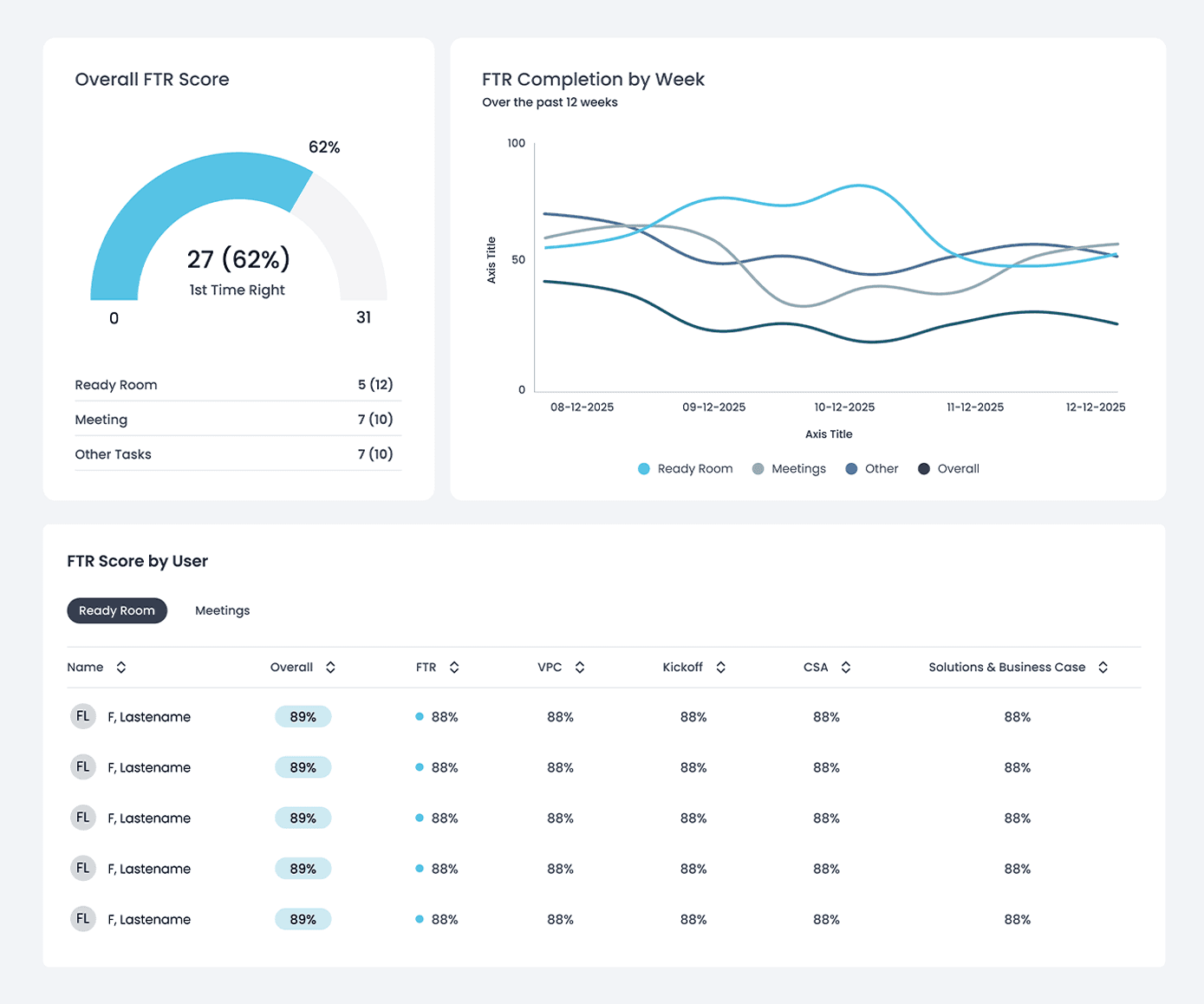 Reporting in CapOptix focuses on three critical facets of the sales effort and rolls up to an Overall Score: