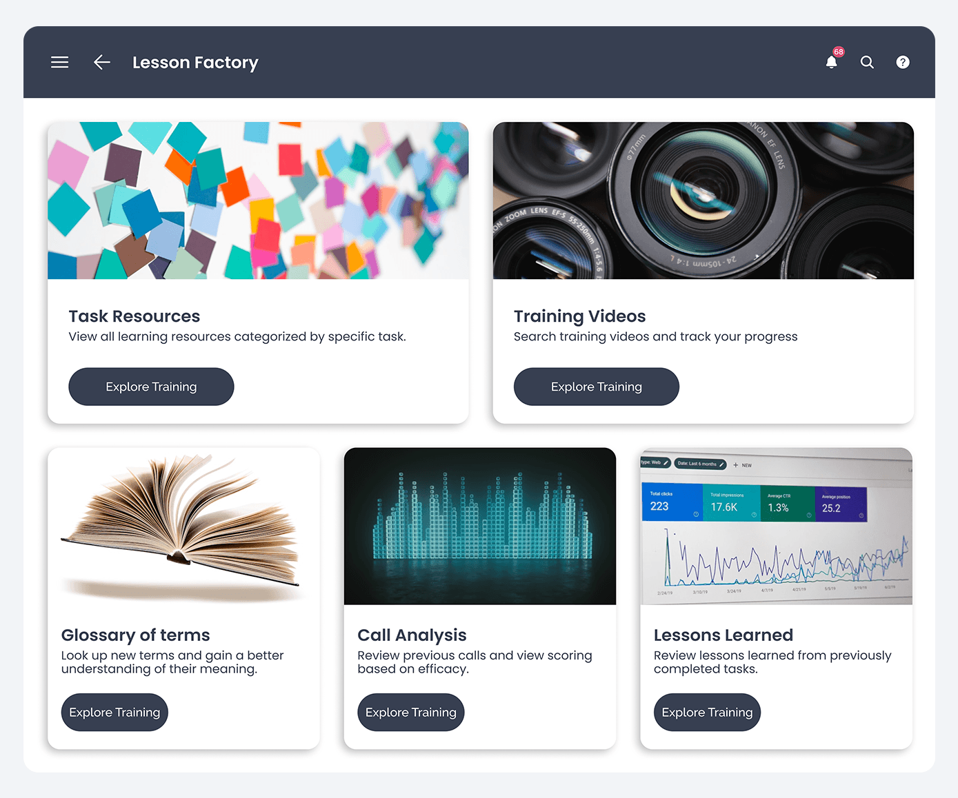 Lesson Factory is a centralized learning center that enables sales teams to ramp up faster and execute all tasks consistently. It includes: